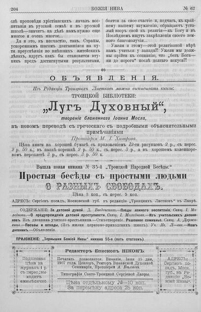Божия нива_1907_№ 67. Июль: Троицкий Собеседник для православной школы и семьи