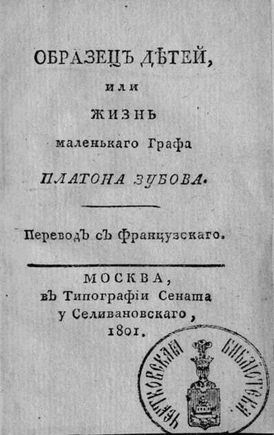 Образец детей, или Жизнь маленького графа Платона Зубова