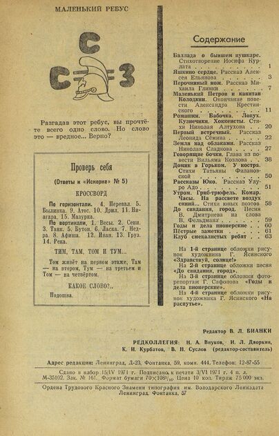 Искорка. 1971. № 6: Ежемесячник газеты «Ленинские искры» — орган Ленинградского Обкома и Горкома ВЛКСМ, Ленинградского Совета пионерской организации имени В. И. Ленина