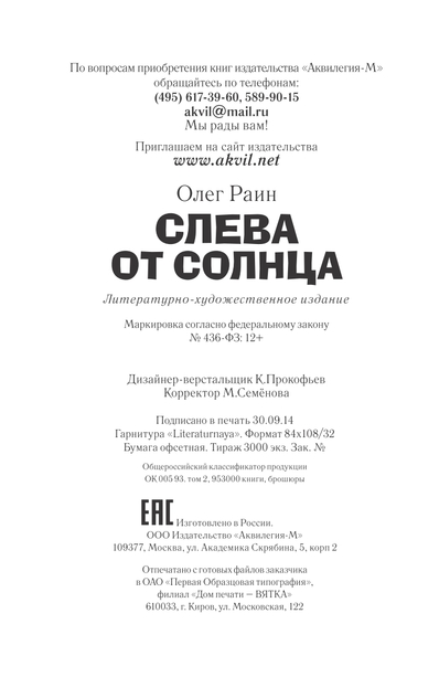 Раин Олег - Слева от Солнца - 2015