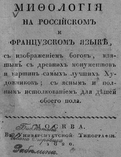 Мифология на российском и французском языке с изображением богов, взятых с древних монументов и картин самых лучших художников; с ясным и полным истолкованием для детей обоего пола