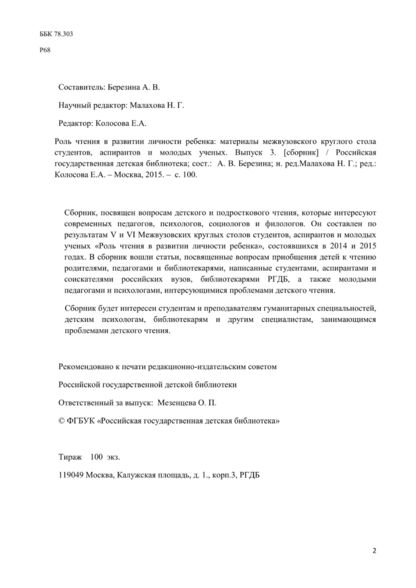 Роль чтения в развитии личности ребенка - 2015