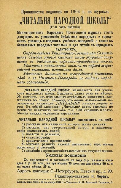 Читальня народной школы_1904_№ 08. Август. 17-й год издания