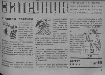 Затейник. 1933. № 15: Орган ЦБ ДКО и Наркомпроса. Выходит два раза в месяц