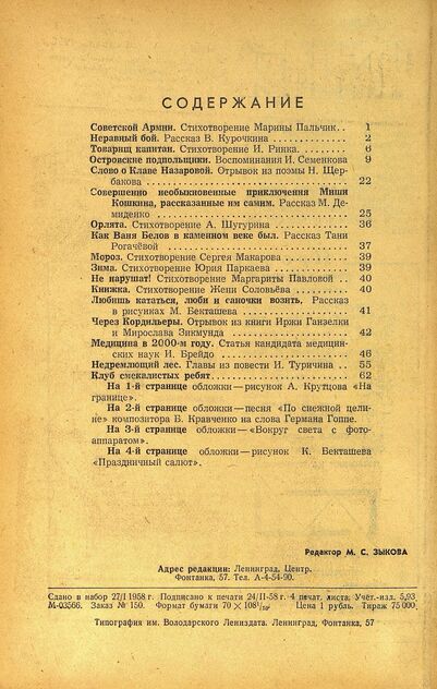 Искорка. 1958. № 02: Ежемесячное приложение к газете пионеров и школьников «Ленинские искры» — орган Ленинградского Обкома и Горкома ВЛКСМ