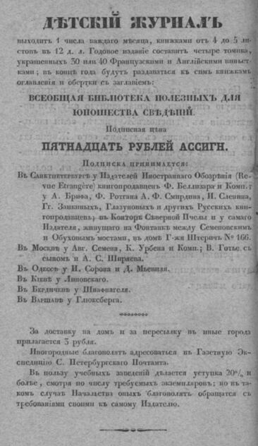 Детская библиотека, посвященная Ее Императорскому Высочеству государыне Великой княжне Марии Михайловне издателем А. Очкиным. 1835. Часть I. № 2