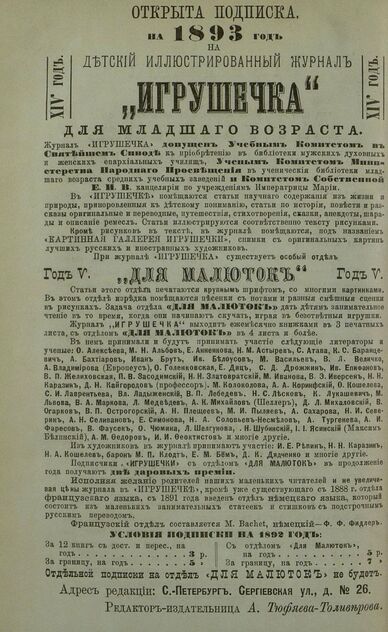 Игрушечка. 1892. № 10 (октябрь)