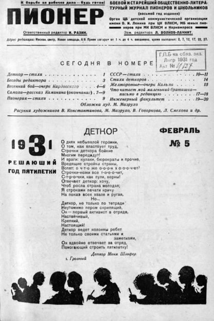 Пионер. 1931. № 05: Боевой и старейший общественно-литературный журнал пионеров и школьников - 1931