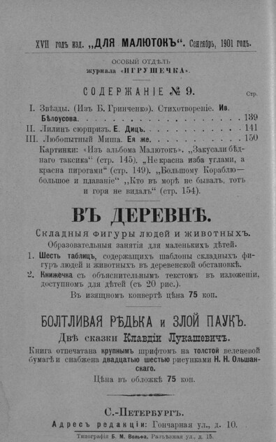 Оригинал хранится в РГБ; Содержание: Содерж. указано на 2-й с. обл.