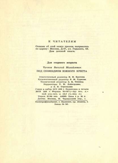 Чичков Василий Михайлович - Под созвездием Южного Креста (в Южной Америке) - 1958