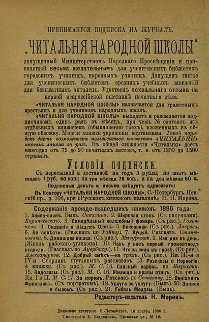 Читальня народной школы_1896_№ 11. Ноябрь. 9-й год издания