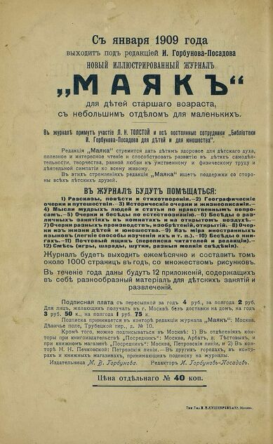 Маяк. 1909. Приложение к № 01