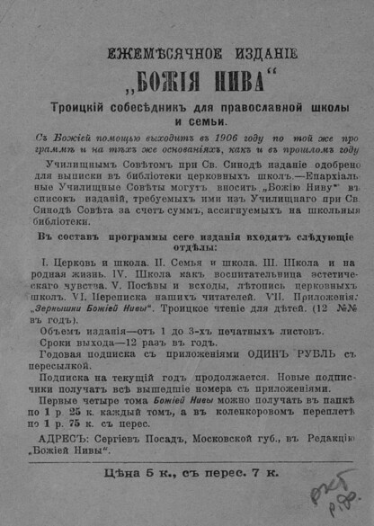 Оригинал хранится в РГБ; Содержание: Содержание указано на титульном листе