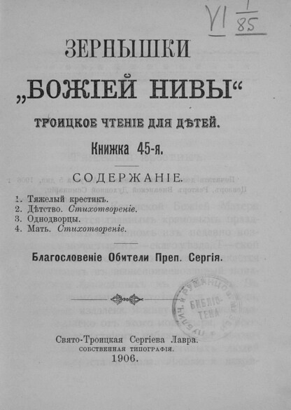 Зернышки Божией нивы_1906_Кн. 45: Троицкое чтение для детей - 1906