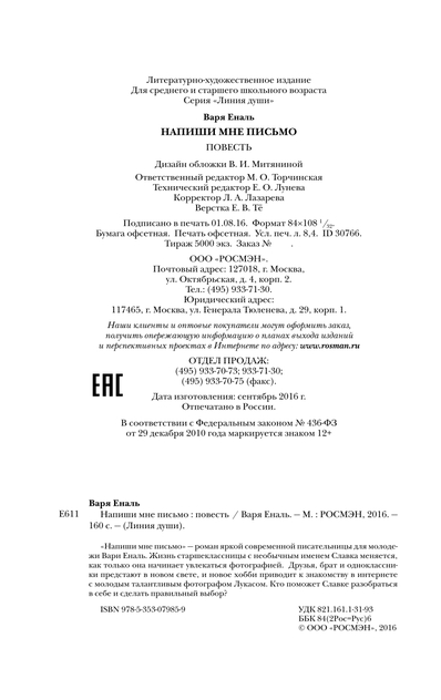 Еналь Варвара Николаевна - Напиши мне письмо - 2016