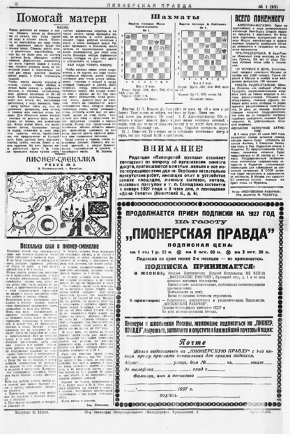 Пионерская правда. 1927. № 01 (95): Еженедельная газета юных пионеров