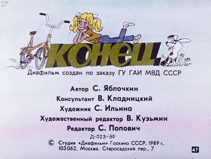 Диафильм сделан по заказу ГУ ГАИ МВД СССР