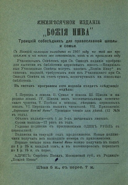 Зернышки "Божией нивы"_1907_Кн. 51: Троицкое чтение для детей