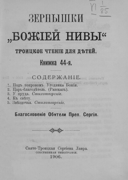 Зернышки Божией нивы_1906_Кн. 44: Троицкое чтение для детей - 1906