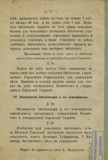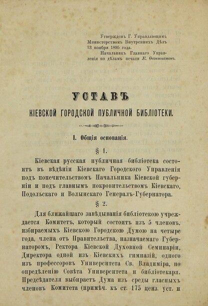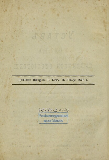 Устав Киевской городской публичной библиотеки - 1896