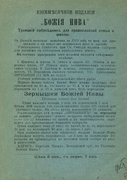Зернышки "Божией нивы"_1912_Кн. 114: Троицкое чтение для детей
