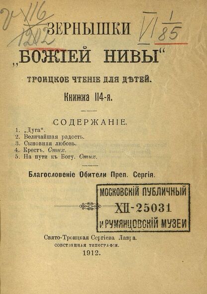 Зернышки Божией нивы_1912_Кн. 114: Троицкое чтение для детей - 1912