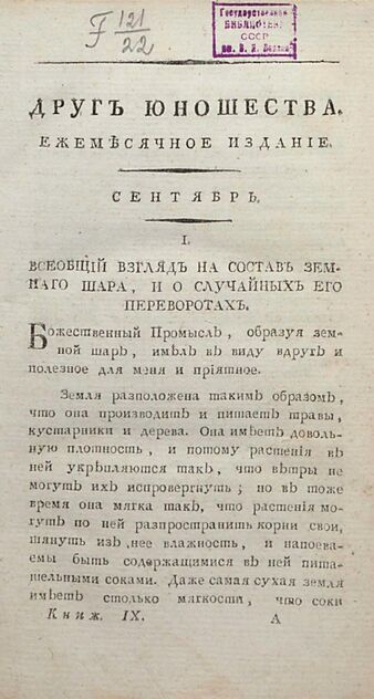 Друг юношества. 1807. Сентябрь: ежемесячное издание