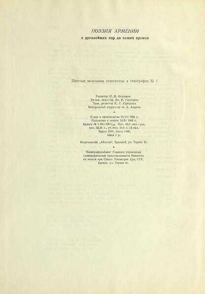 Поэзия Армении с древнейших времен до наших дней