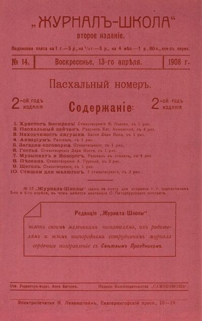 Журнал-школа "Первоначальное обучение и развитие ребенка". 1908. № 14
