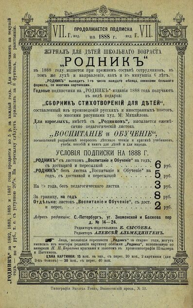 Родник. 1888. № 4 (апрель)