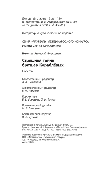 Клячин Валерий Алексеевич - Страшная тайна братьев Кораблёвых - 2015