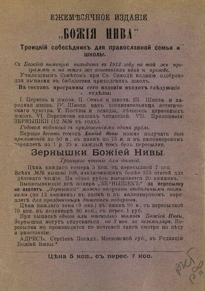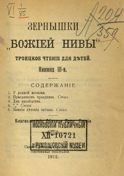 Зернышки "Божией нивы"_1912_Кн. 111: Троицкое чтение для детей