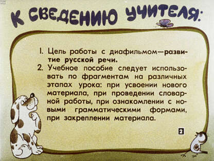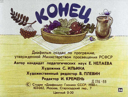 Диафильм создан по программе, утвержденной Министерством просвещения РСФСР.; Предпоследний кадр порван.