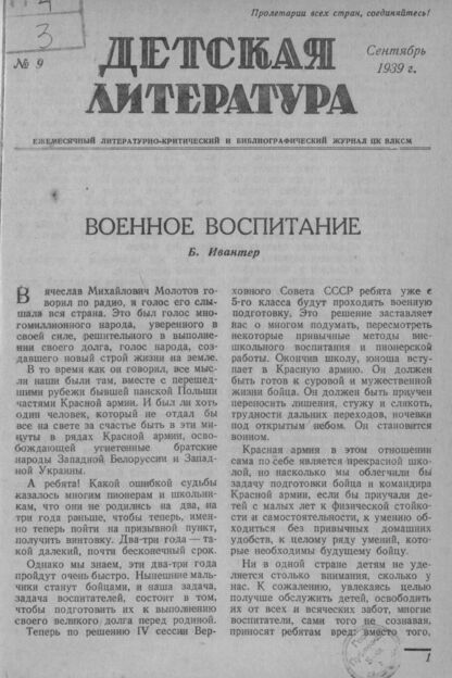 Детская литература. 1939. № 09: Ежемесячный литературно-критический и библиографический журнал ЦК ВЛКСМ